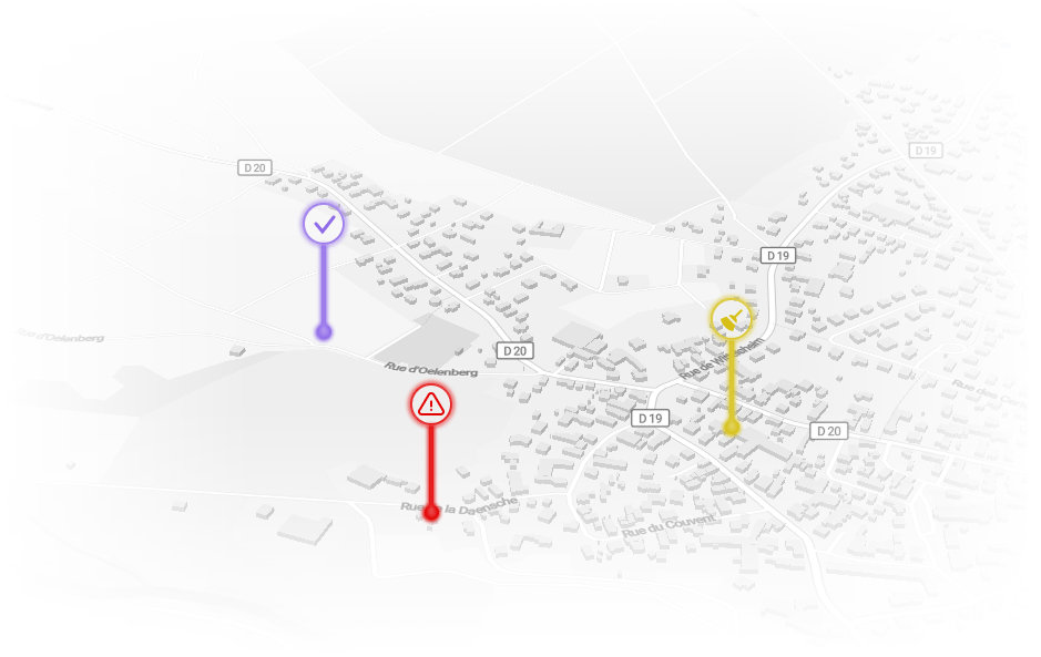 Intervenez sur vos points d'intervention rapidement et efficacement grâce aux remontées terrain. Organisez vos opérations de maintenance.